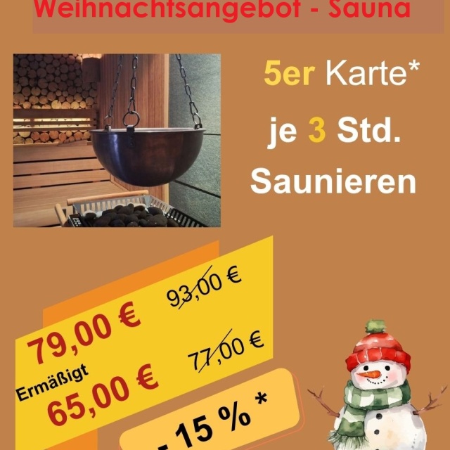 Weihnachtsangebot Sauna 5er Karte 3 Stunden